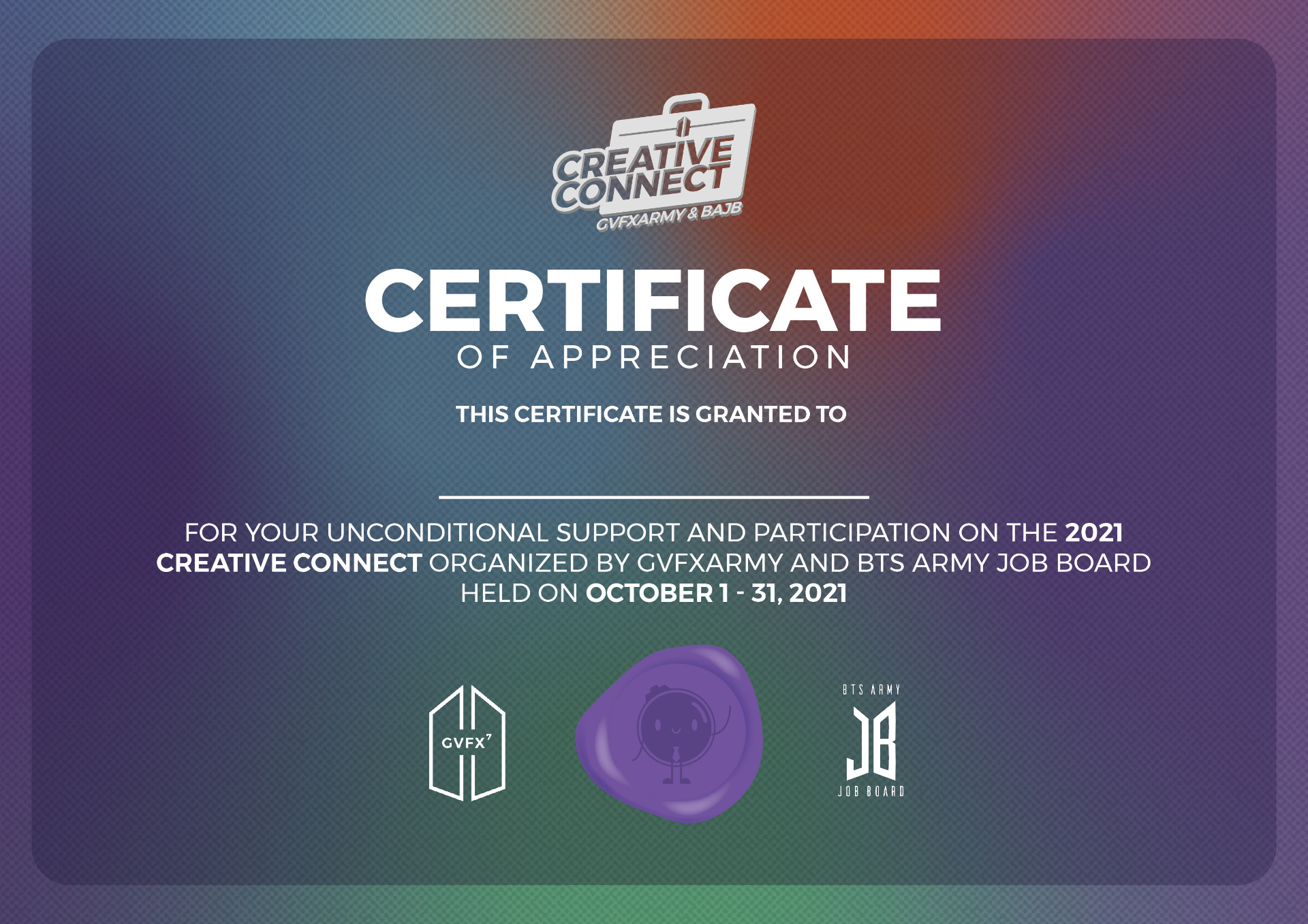 As a token of our appreciation, we gift you a Participation cert for those diligently joined us throughout the whole month with Bami!
